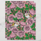 Door de hand getrokken vectorpatroon met rozen bloemen en goudvinken. Alle elementen voor het patroon worden eerst getekend met inkt op papier en vervolgens opnieuw getekend en gekleurd in Illustrator.