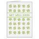 Een Get Well Soon wenskaart, met een patroon van roze rozenknoppen op een witte achtergrond, van een handbeschilderd waterverf ontwerp van Judy Adamson. Gelieve te voelen vrij om het binnenbericht te personaliseren.
