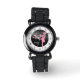 Elk meisje dat van ballet houdt, zal van dit horloge houden! Het heeft een roze silhouet ballerina in het midden. Boven de figuur bevindt zich een spray van zilver sterrenstof. De afbeeldingen zijn op een opvallende zwarte achtergrond geplaatst. Getallen geplaatst op een witte buitenste cirkel maken het horloge gemakkelijk af te lezen.