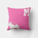 Roze wit voetbal - roze wit monogram gooi kussen voor meisjes die genieten van het spel. De andere kant van dit kussen kan worden aangepast. Alma Wad heeft het ontwerp gemaakt.