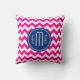 Roze witte en blauwe monogram Chevron Patroon Kussen