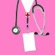 Unieke designer tas met een medisch thema met creatieve roze ziekenhuisscrubs. Om te personaliseren bewerk tekst om naam toe te voegen.