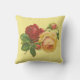 Dit is een helder en gelukkig kussen dat zeker een nieuwe blik naar elke kamer brengt. Een prachtige illustratie van rozen wordt getoond op een bleke gele achtergrond.