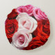 Een ronde kussen met rozen in rood, roze en wit. Ideaal voor roos liefhebbers.