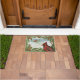 Een heldere rode kardinaal- en pijndenkegels versieren deze feestelijke doormat. Het ontwerp komt uit de oorspronkelijke kunst.