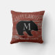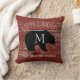 Creëer uw eigen roestrijke beer gepersonaliseerde monogram kussens die perfect zijn voor primitief cabinedrukdecor en RV-koppels - Rustic country-design met zwart silhouet van een beer tegen de achtergrond van oud, noodgedwongen verven rood schuurhout. Bleek grijs monogram initiaal op beer. Leest Happy Campers in gekromde, handgeschreven blik die bovenaan in de passende grijze. Persoonlijke familienaam onderaan in grijze, witte letters. De rug is identiek. Een decor voor een kajuit in de bossen, voor een roestvrijkamer of een cadeau voor een paar dat op de weg gaat met hun RV- of vijfde wielcamper.