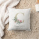 Op maat ontworpen decoratief kussen voor de feestdagen met waterverf bessentak met gepersonaliseerd initiaal.