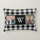 Rustic Black White Buffalo Check 2 Photo Monogram Accent Kussen