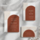 Introduce your reception dining with this elegant bohemian menu card, designed to coordinate with the terracotta arches collection while offering a fresh twist on the signature look. The front features a simple burnt orange arch curve that gracefully frames your meal details, including appetizers, main course selections, and desserts, all set against a light brown background. Retro design. This subtle variation creates a rich, natural copper backdrop that lets your menu information take center stage.