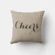 Deze rustic werpen kussen heeft een bolap faux eindigen en Cheers die in een fancy lintmanuscript worden geschreven.