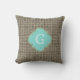 Rustic Country Burlap Kijk, Turquoise Monogram Kussen