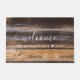 Rustic welcome wood doormat personalized with familiy name and established year.