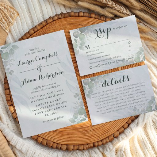 Rustic Eucalyptus Sage Green Waterverf Wedding All In One Uitnodiging