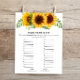Rustic Fall Sunflower Name Race Baby Shower Game
