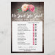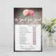 Dit mooie bloemenboeket "zei ze dat" spel is perfect voor een bloem landthema vrijgezellenfeest. Aan de voorkant van de spelkaart staat "hij zei dat ze zei", wat een leuke quiz is over de bruid en bruidegom. Op de achterkant van de kaart staat een woord met huwelijkswoorden en zinnen. Het ontwerp is voorzien van een elegante opstelling van wazige roze waterverf pinda's op een met hout getextureerde achtergrond. Pas de spelkaart aan met de bruidsnaam en de datum van de trouwdouche.