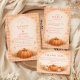 Warm, romantisch en effortless seizoensgebonden, dit herfst bruiloftsontwerp bevat een rijke erfstuk pompoen omringd door zachte bloemen en delicate herfstloof. Een gracieuze botanische boog omlijst de tekst, waardoor een evenwichtige en elegante compositie met subtiele rustieke charme ontstaat. De warme neutrale achtergrond en verbrande oranje accenten maken het perfect voor een buitenherfstfeest, schuur bruiloft of oogst geïnspireerde evenement.