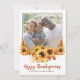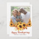 Een mooie Happy Thanksgiving-kaart met een familiefoto met zonnebloemen en een moderne scripttypografie. Pas je aan met je familienaam.
