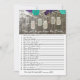 De Rustic vrijgezellenfeest gamekaart komt overeen met ons Rustic Mason Jar Wedding and Vrijgezellenfeest collectie. Dit landelijke feestspel en een bruine houten achtergrond met turkooisblauw en paarse bloemen bovenaan met de moeraspotten die er van hangen. De woorden "Liefde" zijn te vinden in de moeraspotten. Voorzijde: Hoe goed ken je de bruid? Voor extra aanpassingen, voel me vrij om me te contacteren! Getoond is turquoise blauw en paars.