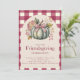 Vier deze herfst de vriendschapsvreugde met deze charmante Friendsgiving-uitnodiging, beschikbaar als zowel een digitale download als een gedrukte kaart. Het ontwerp is voorzien van een salie groene pompoen versierd met een rode gingham boog, omgeven door herfst bloemen en bessen, tegen een linnen-textuur achtergrond met een vet rode gingham grens. Perfect voor casual bijeenkomsten of feestelijke dinerfeesten, deze uitnodiging combineert rustieke boerderijstijl met moderne seizoensgebonden flair. Personaliseer met uw datum-, tijd-, locatie- en RSVP-gegevens en kies vervolgens het formaat dat het beste bij u past: afdrukken en e-mailen voor een traditionele touch, of digitaal verzenden voor direct gemak. Een warme en stijlvolle manier om je favoriete mensen uit te nodigen om te verzamelen, te eten en bedankt te geven tijdens deze Friendsgiving.