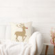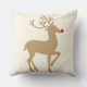 Seizoensgebonden kerstwerpkussens zijn voorzien van een neutraal gekleurde reuzenrendier met een zijdevormig antaarnvormig ontwerp met een subtiel roestbruin uiterlijk en een heldere rode neus. Een patroon van brede horizontale rode en zachte witte/lichte ivoren strepen drukt de achterkant van de kussen omhoog.