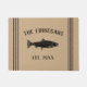 Welkom gasten bij je verblijf met een geweldig bijtend hormoon dat perfect is voor je strandhuis, je landhuis of je kusthuis. Op maat gesneden visontwerpen zijn uw familienaam in zwarte letters, samen met het jaar dat u hebt vastgesteld en een vistekening. Het ontwerp wordt voltooid door de ringstreep die op een klassieke, geelbruine achtergrond wordt weergegeven.