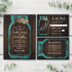 Rustic Teal Mason Jar Wood Wedding RSVP Card