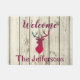 Ben je een fan van rustic decor? Als dat zo is, zal je echt van dit hertenhoofdhormoon houden. Als je een witte houten achtergrond toont, zie je een paars gekleurde hertenkop, afgebeeld op het midden. Boven het afbeelding staat "Welkom", met jouw namen onderaan. Personaliseer je vandaag! Achtergrond door Huckleberry Hearts, LLC, © www.Huckleberry-Hearts.com Deer buckhead Clipart: Kunstwerk gemaakt door: AMBillustraties http://www.etsy.com/shop/AMBillustrations/