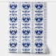 Blauw en wit landelijk rustiek decor patroon met rug-tot-rug hanen en een schuur met extra bloemstijl (floralia) details van Holiday Hearts Design.