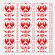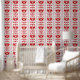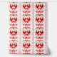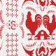Rood en wit landelijk rustiek decor patroon met rug-tot-rug hanen en een schuur met extra bloemstijl (floralia) details van Holiday Hearts Design.