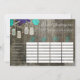 Deze geweldige rustieke bruiloftsshower scattergories game zal je gasten meteen aan het lachen brengen! Deze feestgame heeft een rustieke achtergrond van schuurhout met turquoise en paarse bloemen aan de bovenkant waaraan metselpotten hangen. In de metselpotten staan de woorden "liefde" in verschillende kleuren. Een geweldige bruiloftspartijgame waar gasten jarenlang over zullen praten!