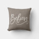 Eenvoudig en schattig, dit rustieke Chic Believe Typography Script Linnen Look kussen is het perfecte accentkussen voor het landhuis. De achtergrond is een dove grijs digitaal linnen verfraaid met het woord "Believe" in een trendy, moderne scripttypografie. De achterkant van het kussen heeft dezelfde linnen achtergrond, maar is duidelijk, dus het kussen is omkeerbaar, indien nodig. Een geweldig cadeau voor alle gelegenheden.