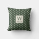 Op maat ontworpen kerstkussen met rustieke handgetekende stijl bos groen en beige pijnbomen ontwerp met gepersonaliseerde familienaam monogram.