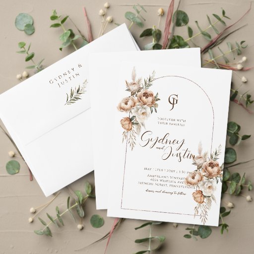 Maak uw speciale dag bekend met onze Rustic Dried Floral Pampas Wedding Save the Date. Deze kaart heeft een prachtig rustiek ontwerp met zachte, gedroogde pampagras en delicate bloemen, waarmee de essentie van een ontspannen, boho-geïnspireerde bruiloft perfect wordt vastgelegd. Ideaal voor koppels die een natuurlijke en aardse thema willen, deze save the date zet de toon voor een feest vol warmte en charme. Personaliseer uw details op hoogwaardig karton voor een persoonlijke touch die uw gasten zullen aanbidden.