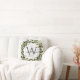 Gepersonaliseerde bruiloft aandenken. Dit elegante, rustieke designkussen heeft een witte en grijze marmeren textuurachtergrond met een prachtig waterverf gebladerte en katoenen bollenkrans die het klassieke groene monogram-initiaal lijsten. De voornamen van het paar zijn geschreven over het monogram initiaal in een prachtig kalligrafiescript, met de trouwdatum hieronder. Het ontwerp is hetzelfde aan de voor- en achterkant. Een geweldig cadeau voor de pasgetrouwden. Geweldig voor uw slaapkamer, favoriete stoel, een formele decoratieve toevoeging aan uw woonkamer, of gewoon voor een leuke inrichting in uw familiekamer. De kleuren van alle tekstvelden kunnen naar wens worden gewijzigd.