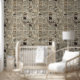 Dit behang toont een zorgvuldig vervaardigde patchwork collage van krantenknipsels, naadloos geassembleerd om een rustieke en nostalgische sfeer op te roepen. De verouderde papieren texturen, gecombineerd met klassieke typografie en historische fragmenten, creëer een tapijt van de charme van weleer. De monochromatische sepia tonen versterken de antiek esthetiek, waardoor het een tijdloos stuk is dat de essentie van printmedia belichaamt.