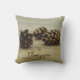 Rustiek kussenontwerp met drie pinecones op houttextuur met een personaliseerbare tekst sjabloon. Perfect voor het toevoegen van uw familienaam of speciale tekst. Gezellige, natuur-geïnspireerde inrichting voor cabine, boerderij of bossen stijl kamers.