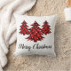 Dit kussen beschikt over drie rode boerderij geruite kerstbomen met de woorden Merry Christmas, die aanpasbaar is. Het maakt een mooie aanvulling op een woonkamer of cadeau-idee voor de Feestdagen.