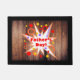 Vrolijk Vaderdag-ontwerp maakt een grote plons met kleurrijke cirkels, schattige smiley gezichten en "Happy Vaderdag"-tekst op een rustieke, houten look achtergrond.