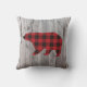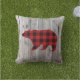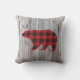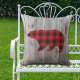 Rustige bosgrond beer met rode buffelplaat buitenkussen