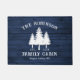 Geef uw land thuis een persoonlijk tintje met een prachtige, rustige, ingangsmoort met jouw naam en familiecabine, Ranch, Cottage of andere tekst, samen met de vastgestelde datum en locatie indien gewenst. Dit aangepaste, unieke ontwerp biedt een stijlvolle landtekst met een witte silhouet van dennenbomen op een afdruk van houtplanken in rijke blauwe kleuren. Om meer design als deze te zien, kunt u mijn winkel hier op Zazzle.com/Rustic_Charm bezoeken. Bedankt.
