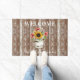 Rustic Country Farmhouse Sunflower Familienaam Doormat - Wat een mooie manier om je familie en vrienden welkom te heten in je huis of bedrijf. Onze bijtende, boerderijachtige welkomstmat is uitgerust met een robuuste, weersemmer gevuld met zonnebloemen en babyademhaling op een ontzettend geschermde houten achtergrond en is gepersonaliseerd met uw familienaam of bedrijfsnaam. Welkom Mat maakt deel uit van een collectie.