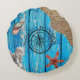 Rustige Nautical Blue Wood Burlap Starfish Rond Kussen