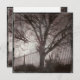 Robuust vervormd ontwerp van de Silhouette Grunge-structuur bij zonsondergang in een diepe paarse kleur met een omheining op de achtergrond. Het heeft een boomsilhouet met stranden. Een geweldige herfst of herfst.
