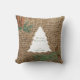 Een roestachtig dennenbos met een faux burlap textuur op de achtergrond, vergezeld van dennenkegels en vertakkingen, alsmede een eenvoudig wit silhouet van een kerstboom en uw aangepaste tekst. Ideaal voor kerstcadeautjes en decor. Pas de kerstkussen aan met jouw tekst en maak het uw eigen.