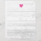 Rustige witte schuur met houten korrellijn trouwbriefhoofd. Schrijfpapier voor landkantoorbenodigdheden voor menu's, noten, brieven, instructies, uitnodigingen, aankondigingen, activiteiten, routes enz. Fuchsia roze hart met licht grijs afbeelding tegen de achtergrond van hout. Een deel van het prachtige overeenkomende collectie dat is ingesteld voor trendy bruid en bruom trouwen. Romantisch shabby-design. Ideaal voor buitenshuis boerderij of zomerhuwelijk. briefpapier.