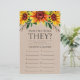 Deze mooie bijtende zonnebloemen Hoe oud waren ze? vrijgezellenfeesten spellen zijn elegant en charmant - perfect voor elke tuinlijke, botanische, rustige, romantische, bloemige, formele of traditionele bruiloft. De voortreffelijke combinatie van gracieuze, gele zonnebloemen met meerdere hoeken en verfijnde groen is debiet, delicaat en mooi. Dit leuke en gemakkelijke spel is zeker om veel gelach naar elk vrijgezellenfeest te brengen! Laat familie en vrienden je afbeeldingen van de bruid en bruidegom sturen op elke leeftijd en laat ze afdrukken. Nummer ze en stel ze in de buurt van deze spelbladen. Geef gewoon een vel aan elke gast (vergeet de pennen niet) en laat de wedstrijd beginnen! Je zult verbaasd zijn over hoeveel mensen echt weten hoe oud de bruid en bruid zijn. In seconden kun je zien hoe je gamepagina eruit zal zien. Selecteer deze Sjabloon gewoon personaliseren en typ in de namen van de bruid en de groom.