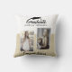 Rustic Afstuderen 2 Foto Collage Pillow. Moderne Ontwerp met 2 foto's op een beige rustic achtergrond en trendy zwart manuscript. Pas uw favoriete foto's aan met de naam van de afstuderen persoon en creëer u dit unieke geschenk en een zoete keepjeskussen.