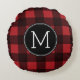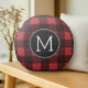 Rustisch monogram rood en zwart buffel patroonmono rond kussen