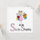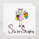 Als je van winkelen houdt en schattige stokfiguren hou je van onze S is voor winkelende T-shirts, mokken, kaarten, stickers, zakken, magneten, keepsakes, sleutelhangers, knoppen en andere boodschappenthema's met een meisje met een stokfiguur in een roze jurk.
