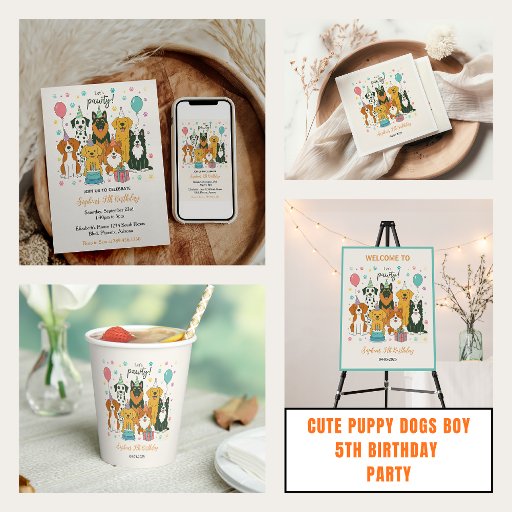 Cute Puppy Dogs Boy 5th Birthday Party CollectionConçu par Oussama